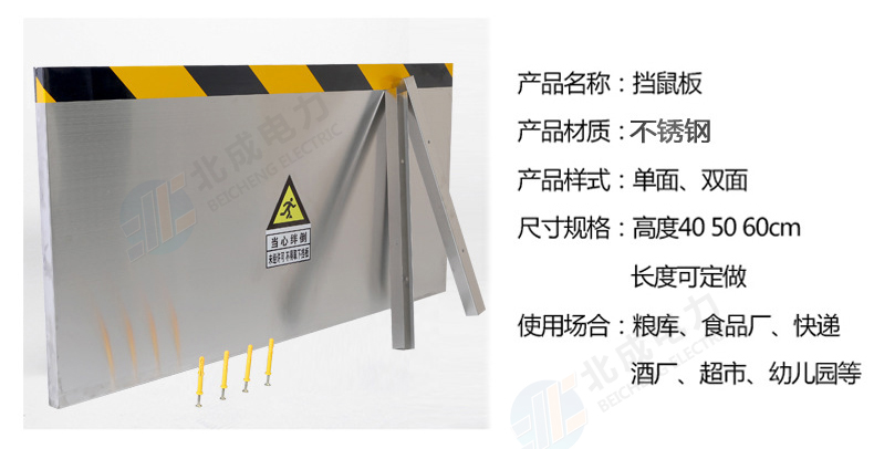 4.擋鼠板的高度常規(guī)尺寸為50厘米,寬度可根據(jù)客戶要求制作。